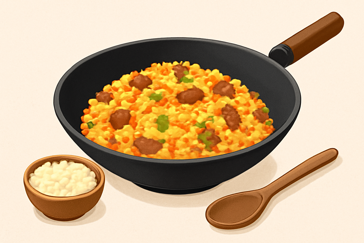 Приготовление плова обычно связано с использованием казана, но не стоит переживать, если такой посуды под рукой нет. Глубокая сковорода вок, благодаря своей форме и толстому дну, идеально подходит для создания этого вкусного блюда, так как обеспечивает равномерный прогрев и нужный объем.