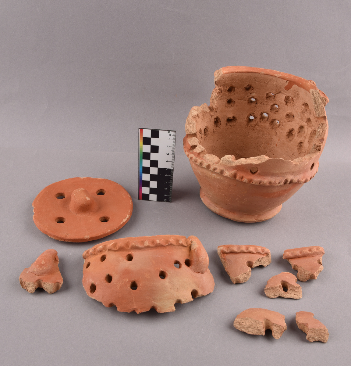Реставрация началась с тщательной очистки поверхности. Все трещины и края сколов были укреплены, а затем произведена сборка фрагментов перед финальным склеиванием. После завершения этого этапа, мастиковка швов помогла визуально скрыть следы вмешательства. Благодаря этому процессу курильница была возвращена в экспозиционный вид и остановлено ее дальнейшее разрушение.