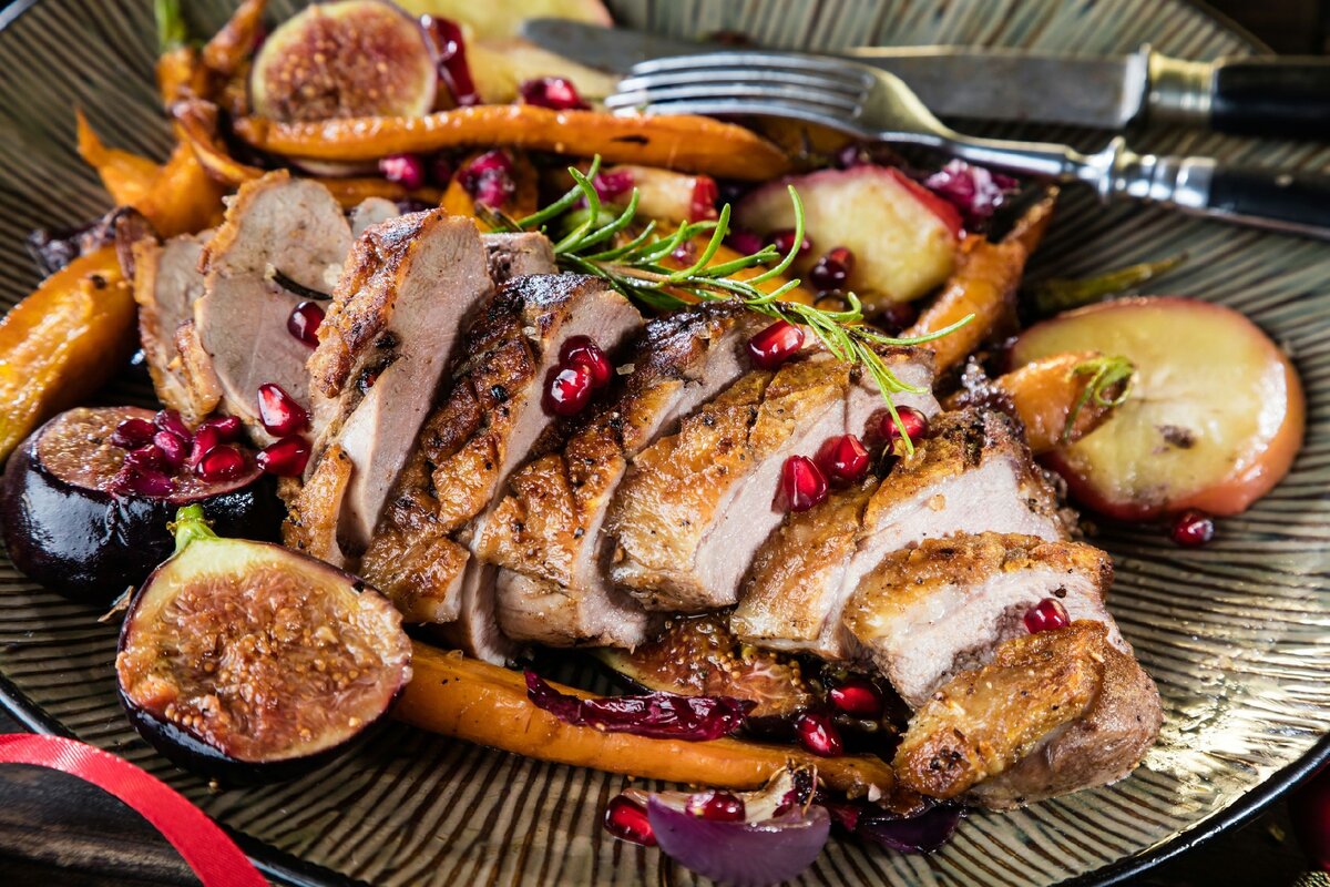 Чтобы насладиться мягким и сочным мясом, стоит удалить некоторую часть жира или растопить его. Для более насыщенного вкуса во время запекания рекомендуется начинать с высокой температуры, чтобы получить хрустящую корочку, а затем постепенно снижать ее, позволяя мясу пропечься равномерно.