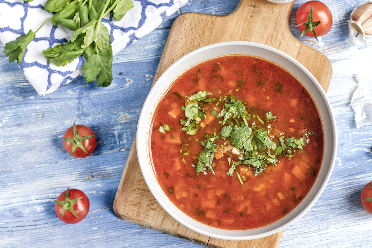 Второй шаг: Переложите обжаренные овощи в кастрюлю с чечевицей и добавьте резаные томаты. Посолите и поперчите по вкусу, затем варите ещё 5-7 минут. Суп должен оказаться густым и насыщенным. Порежьте кинзу и добавьте в самом конце. Попробуйте на вкус и при необходимости добавьте соли. Если хотите, можно измельчить суп погружным блендером до состояния пюре. Перед подачей наслаждайтесь его восхитительным вкусом!