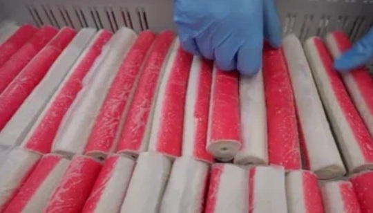 Замороженные брикеты сурими размораживают и помещают в мощный миксер – куттер, где их комбинируют с другими компонентами. В состав многих крабовых палочек входят: