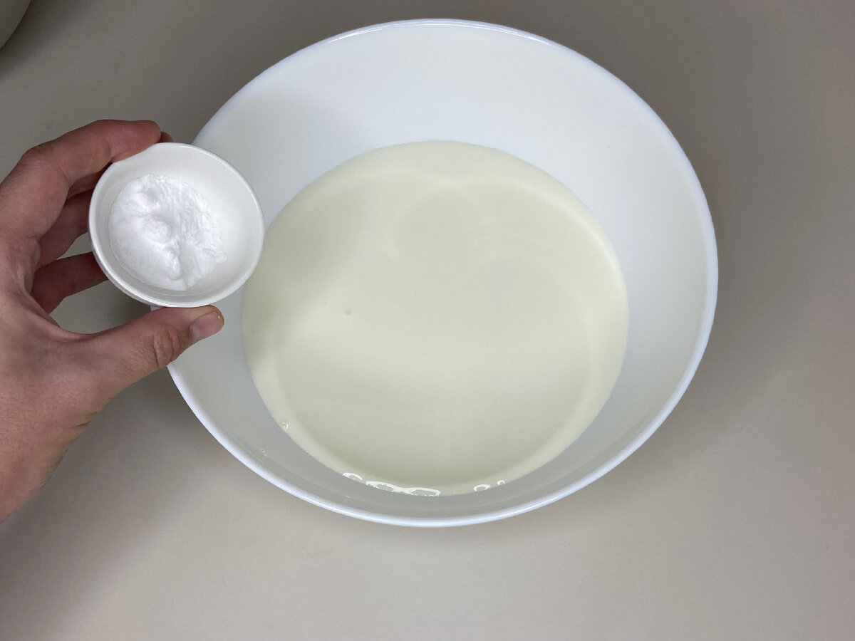 Чтобы сделать тесто по-настоящему воздушным, кефир нужно оставить на ночь при комнатной температуре. Затем добавляется сода, которую нужно оставить на 2-3 минуты, чтобы она вступила в реакцию с кефиром.