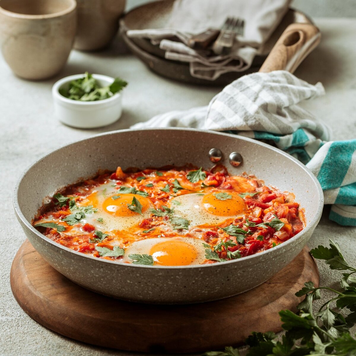 Классическое сочетание помидоров и лука с яйцами — это настоящее гастрономическое наслаждение. Начать стоит с обжаривания лука до мягкости, после чего добавляются нарезанные без кожицы помидоры. Когда томаты станет мягкими, пришло время вводить яйца. Итоговое блюдо порадует ярким цветом и гармоничным вкусом.
