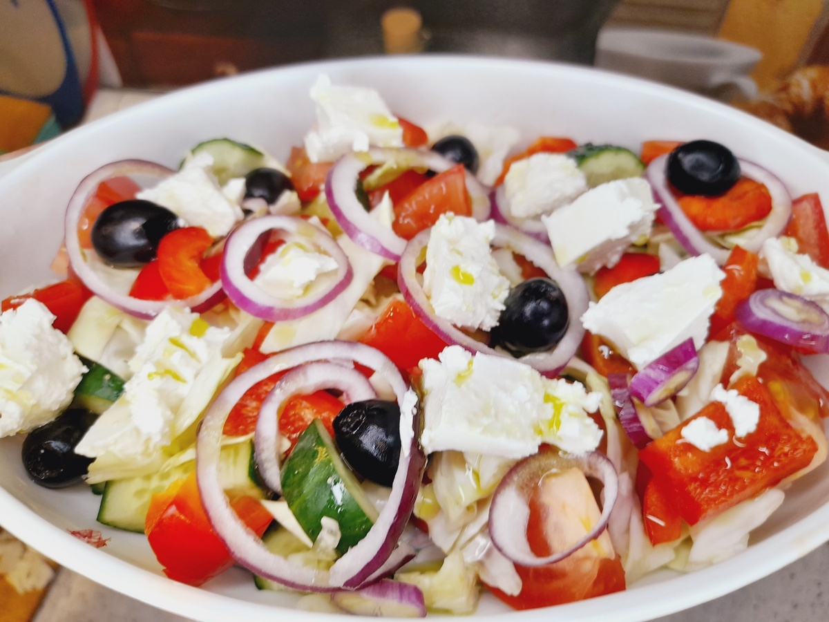 Сегодня предлагаем вашему вниманию необычный вариант греческого салата, где встречаются традиции и современность. Вместо некоторых ингредиентов классического рецепта используются доступные продукты и приправы, что придает блюду уникальный вкус.
