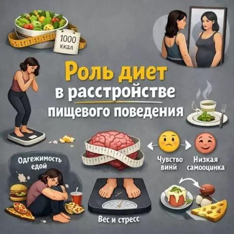Ограничительные диеты занимают ключевую позицию в возникновении расстройств пищевого поведения (РПП). Они активируют биологические механизмы, воспринимаемые организмом как угроза для выживания: