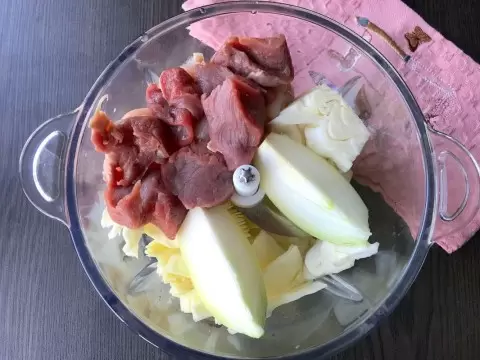Для начала стоит подготовить основные ингредиенты. Главные компоненты — это капуста, мясо и специи. Чтобы сократить время на готовку, капусту, лук и мясо можно крупно нарезать и отправить в кухонный измельчитель. Если возможности нет, подойдет и мясорубка.