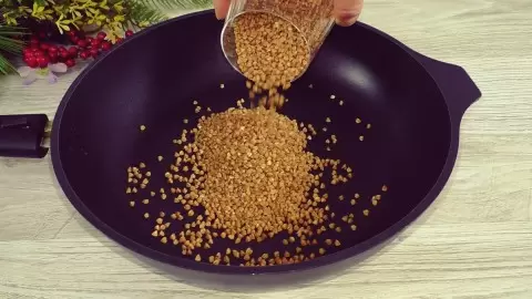 Шаг 1: Промойте гречку, дайте воде стечь и обжарьте её на сухой сковороде на сильном огне, не забывая постоянно перемешивать. Убедитесь, что она лишь слегка румянится — это придаст ей особый характер.