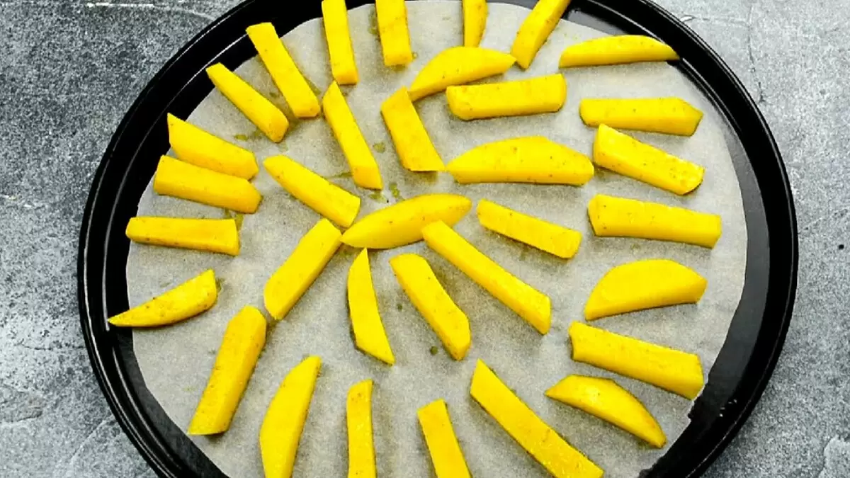 Завершенный картофель фри будет выглядеть так аппетитно благодаря куркуме, которая придаёт ему особый цвет и эффектный вид. Это блюдо по вкусу ничем не уступает ресторанным, хотя его приготовление занимает минимум времени!