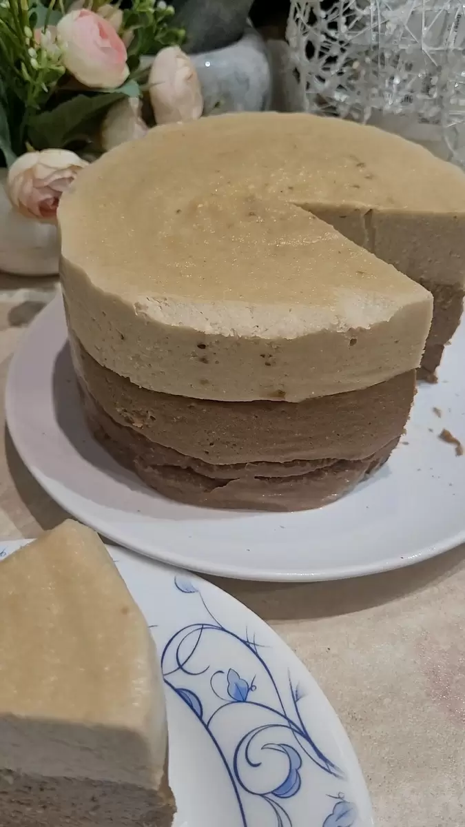 Первым слоем готовится темный шоколад. В блендер помещают кешью, сироп и кэроб, тщательно измельчают. В сотейнике смешивается кокосовое молоко с агаром, доводится до кипения и вальцуется в блендер к кешью, доводя до однородной массы. Затем массу выливают в подготовленное кольцо и убирают в холодильник.