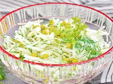 В итоге получается салат, который стоит кушать просто так, без дополнений. Он хрустящий, легкий, с легким сладковатым послевкусием благодаря горошку и уксусу. Если вас интересуют быстрые и доступные рецепты, этот салат станет вашим настоящим открытием. Идеален для тех, кто ценит простоту и качество в блюдах.