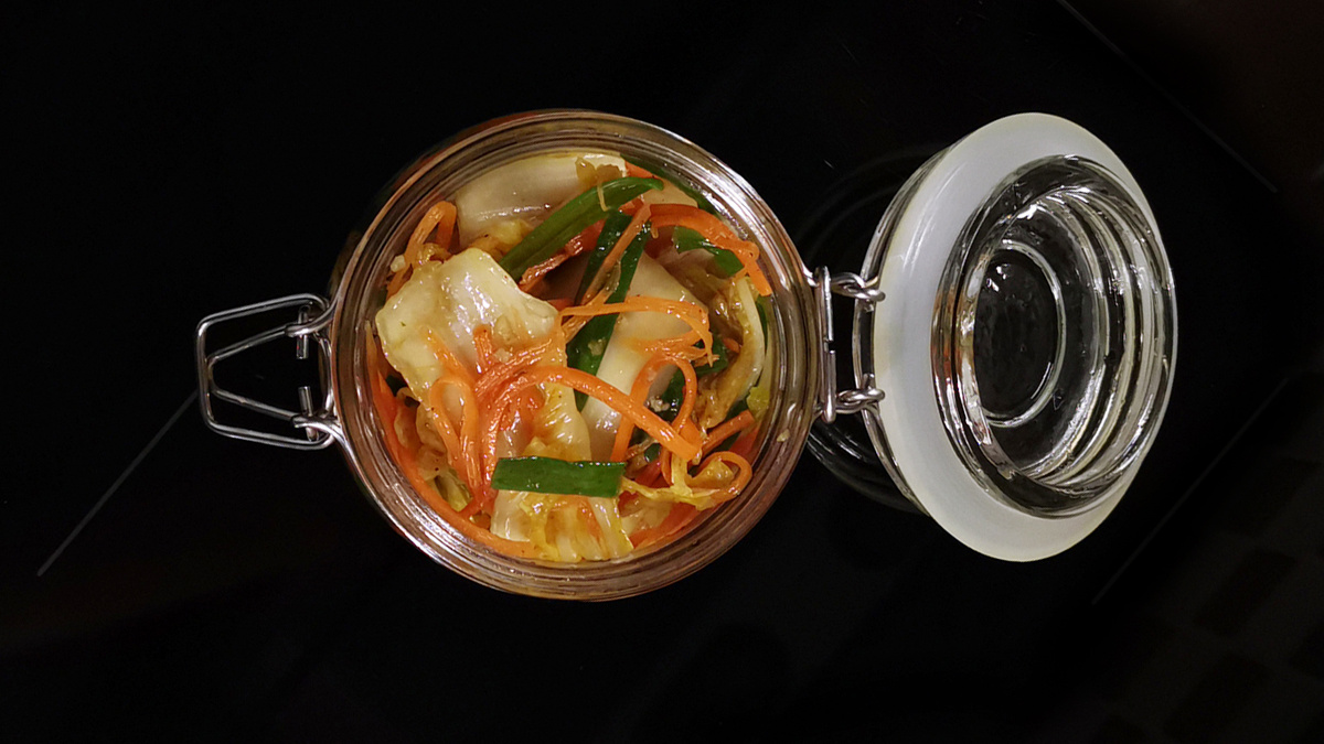 Для начала необходимо подготовить овощи. Пекинскую капусту стоит нарезать крупными кусочками, чтобы облегчить поедание. Морковь лучше нарезать длинной соломкой. Режущие инструменты, такие как корейская терка, значительно упростят этот процесс.