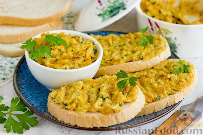 Ингредиенты: кабачки, морковь, лук, чеснок, плавленый сыр, петрушка, орегано, соль, черный молотый перец, подсолнечное масло.
