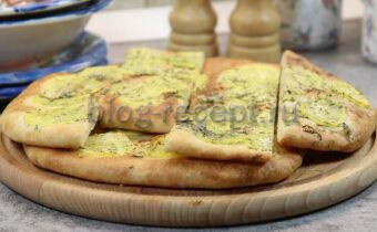 Готовые лепешки имеют аппетитный блестящий вид и насыщенный аромат. После того как они немного остынут, их можно нарезать на широкие полоски. Эти лепешки низкие и хрустящие, идеально сочетаются с любым супом.