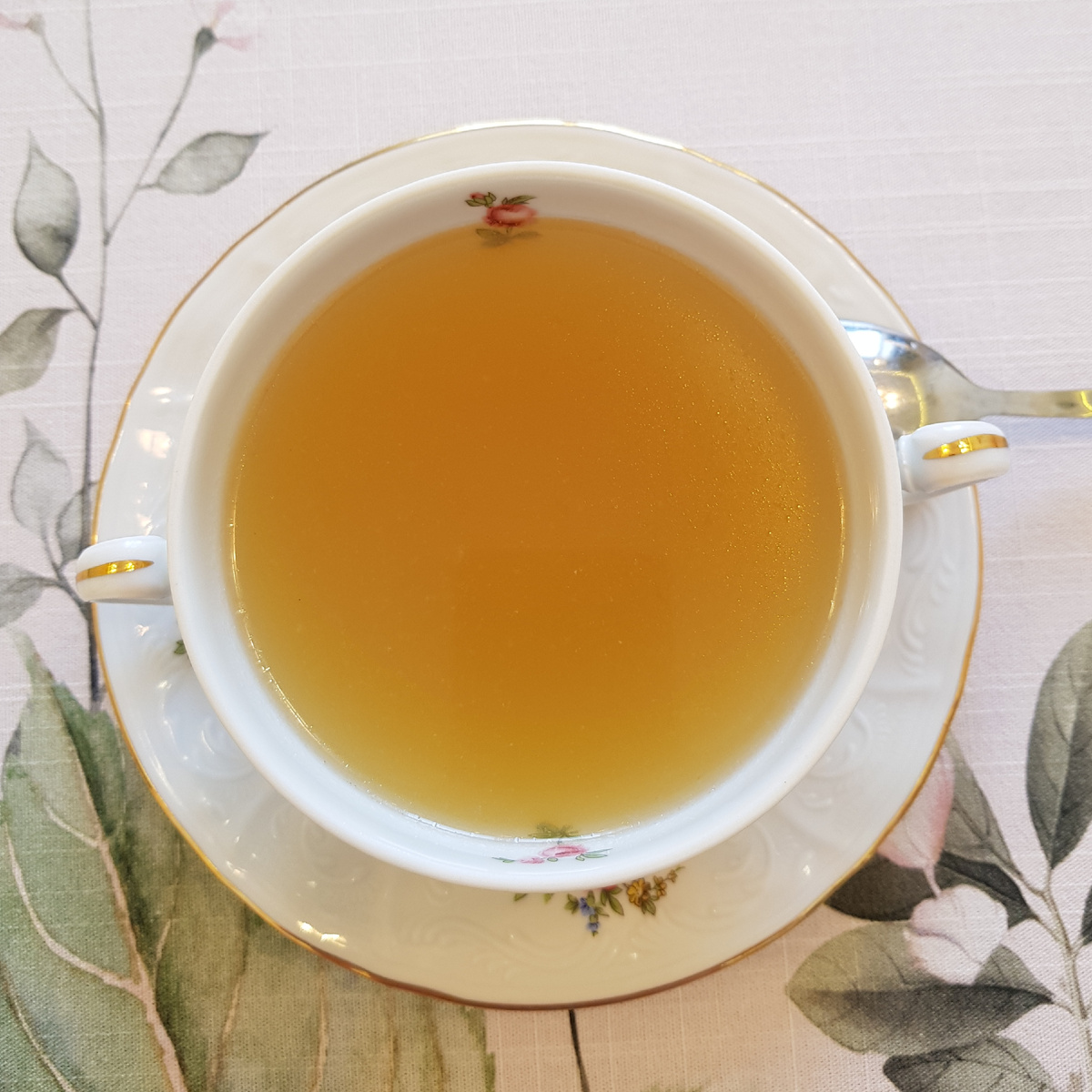 Доводим до кипения, убираем пену и добавляем остальные специи. Кастрюлю накрываем крышкой и варим на медленном огне в течение трех часов. Когда бульон готов, процеживаем его через марлю, удаляя остатки жира. Для достижения идеальной прозрачности, бульон охлаждаем и оставляем в холодильнике на ночь, а затем снимаем жир.