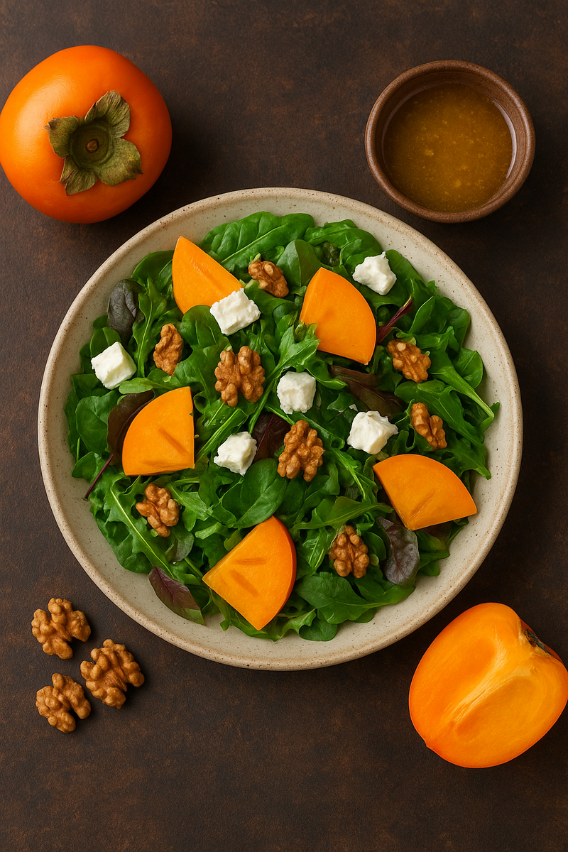 Чтобы получить наилучший результат, хурма должна быть спелой, но не слишком мягкой — именно такая текстура подчеркнёт все её достоинства. Правильно подобранный фрукт придаст салату изысканность и яркость.