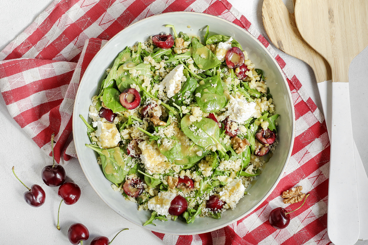 Этот необычный вегетарианский салат с черешней, рикоттой и булгуром станет отличным выбором для летнего ужина. Яркие цвета, свежие ингредиенты и универсальный вкус сделают его идеальным дополнением к любой трапезе.