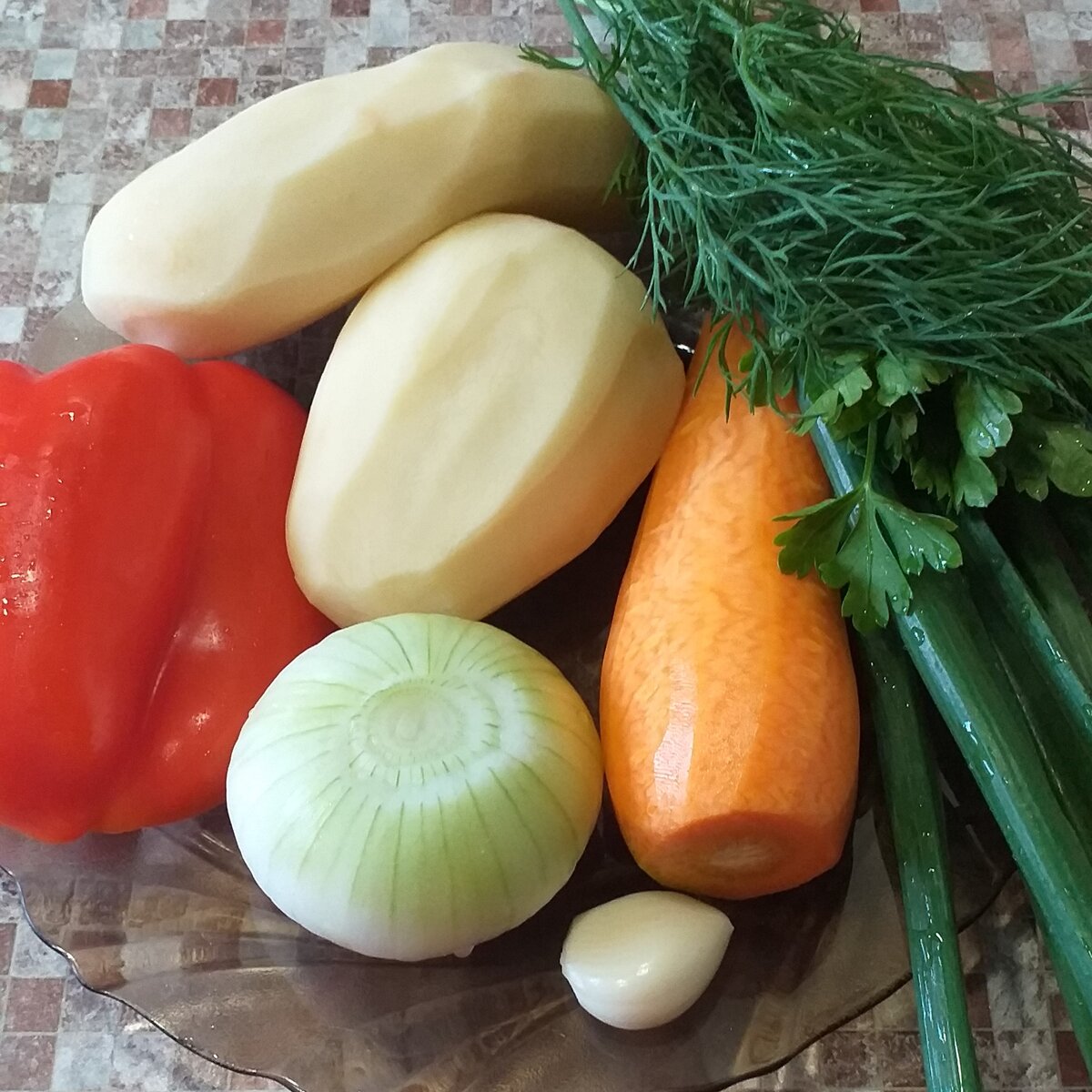 - Зелень (петрушка, укроп, лук) — небольшой пучок