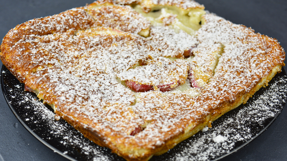В отдельной миске следует взбить яйца с сахаром и молоком, а затем постепенно добавить муку, чтобы тесто получилось однородным. Перемешанное тесто заливают поверх яблок и отправляют в предварительно разогретую до 170° духовку. Выпекать рекомендуется в течение 20-25 минут — и вкусный десерт готов!
