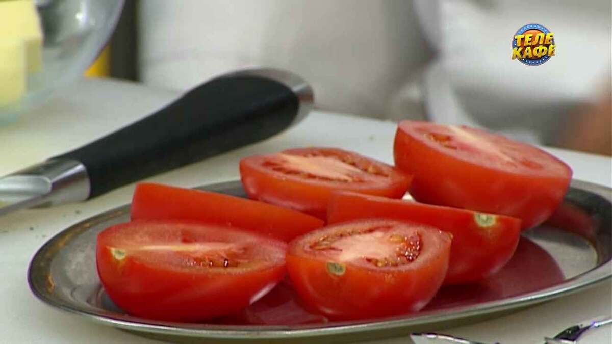1. Начните с подготовки помидоров: разрежьте их пополам вдоль и выложите на противень.