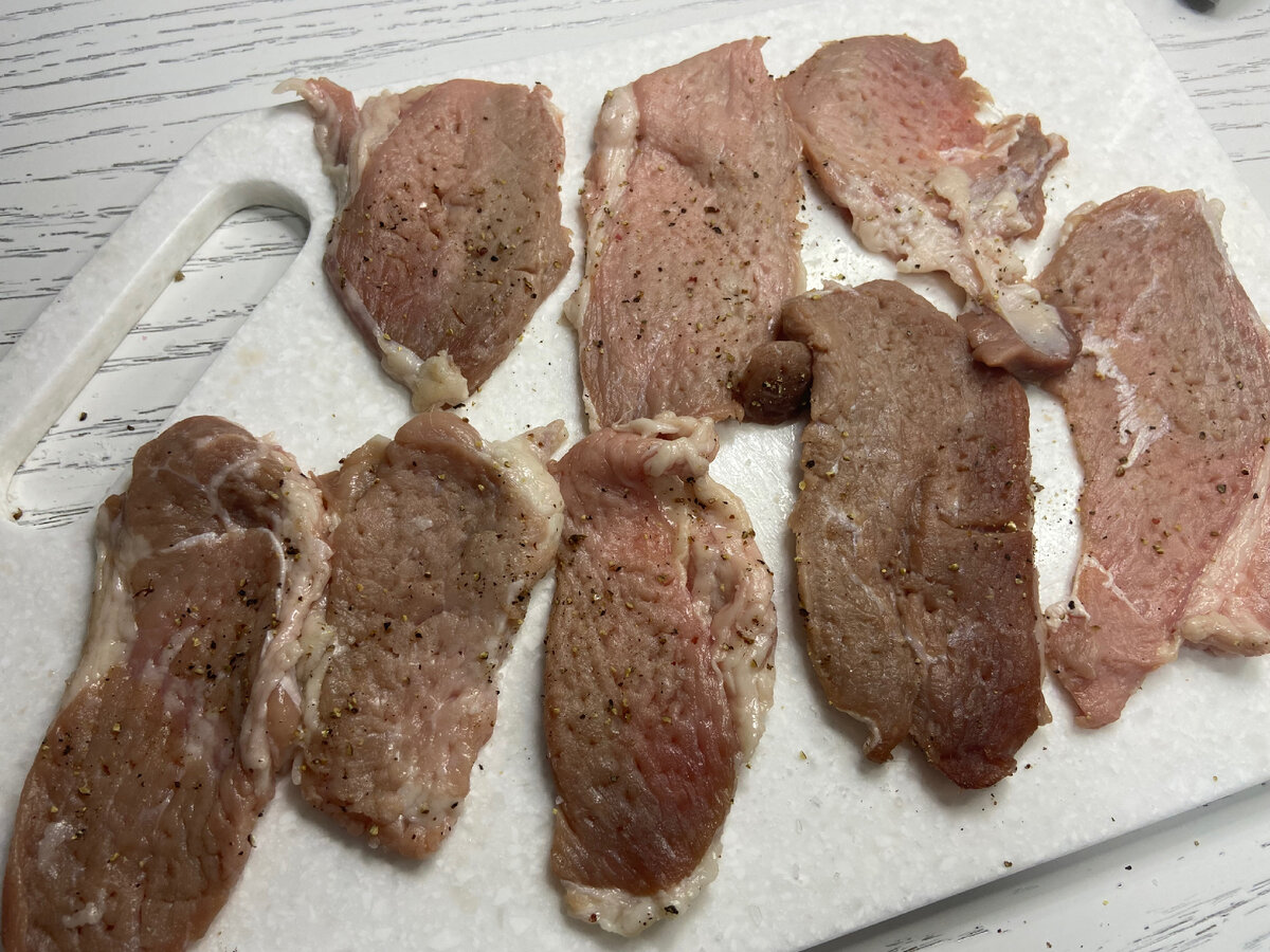 Для приготовления блюда подойдет любое мясо, но сегодня акцент на свинину. Итак, начинаем с нарезки мяса на небольшие кусочки. Их следует слегка отбить с обеих сторон и натереть солью и свежемолотым черным перцем. После этого разместите кусочки в форму для запекания, учитывая, что можно располагать мясо как угодно — порционно или в общей принципе.