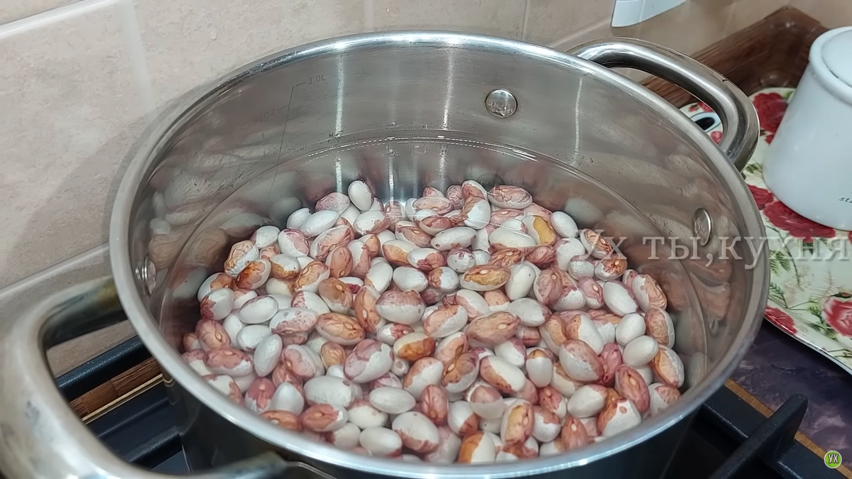 1. Фасоль нужно замочить на ночь, а затем отварить до готовности и охладить.