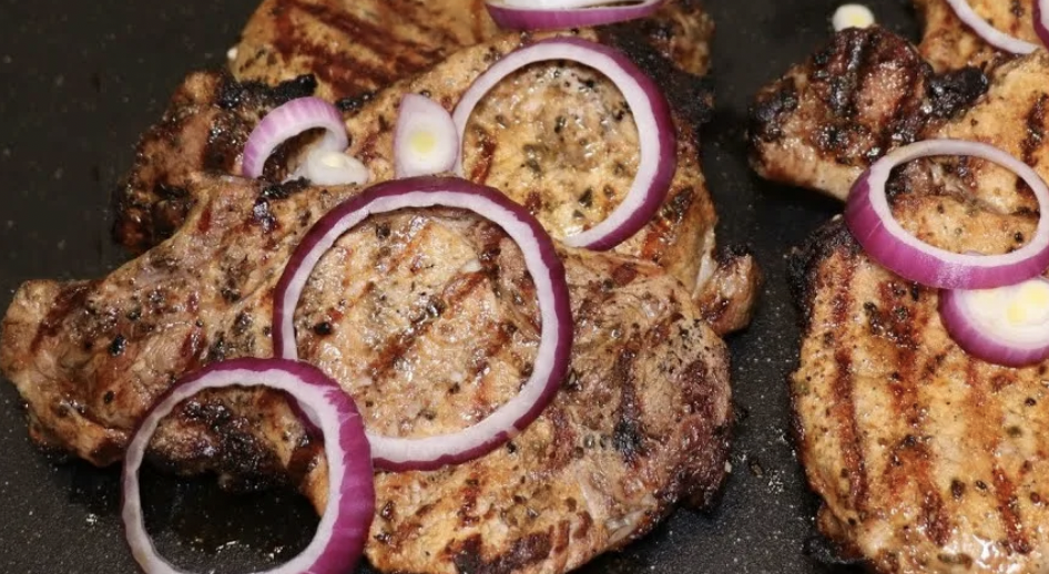 - Для свинины важна полная прожарка: мясо должно быть well done и при этом оставаться сочным. В начале процеса кусочки обжариваются с двух сторон на сильном огне — так создается корочка, благодаря которой сок не убегает.