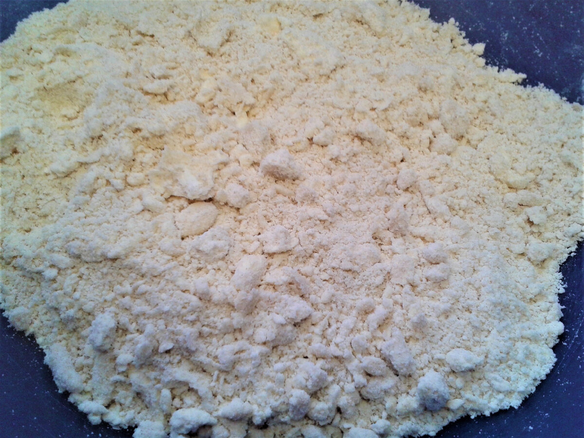 Для начала нужно разогреть духовку до 180 градусов. В большой миске просеять муку, затем добавить щепотку соли и втереть размягченное сливочное масло, добиваясь однородной мучной крошки. Далее сыр следует натереть на мелкой терке и хорошенько перемешать с мукой.