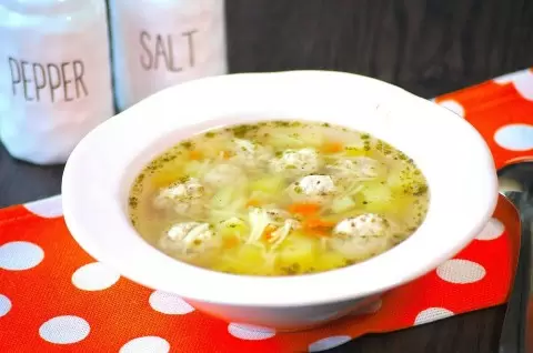 Пока картофель закипает, время заняться формированием фрикаделек. После этого их следует аккуратно опустить в уже кипящую воду. Далее, следует очистить и нарезать морковь на небольшие кусочки и добавить в бульон.