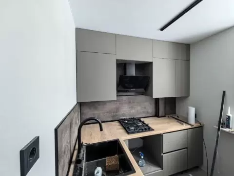 В квартире сына ремонт практически завершён. Остались лишь небольшие штрихи: установка плинтусов, карнизов, тумбы в ванной, а также встраивание стиральной машины и подвешивание люстры. На кухне всё готово, и теперь настало время подумать о покупке посудомойки и духового шкафа.