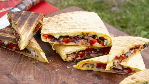 Кесадилья — это настоящая находка мексиканской кухни, состоящая из тонких пшеничных или кукурузных лепешек, в которых обязательным ингредиентом является сыр. На этот раз предлагается приготовить кесадилью с куриным мясом, обжаренным на гриле. Секрет быстрого и простого приготовления порадует и удивит ваших домочадцев.