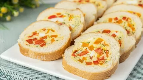 5. Охладите и нарежьте. Упакуйте наполненный багет в пленку и положите в холодильник для застывания. Как только он охладится, нарежьте его на порционные куски, и закуска готова к подаче!