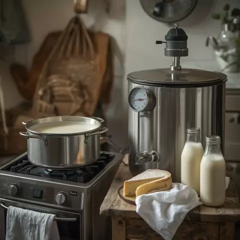Новички могут начать с кастрюли — это минимальные затраты с наибольшей пользой для практики. Тем не менее, если ручное управление процессом становится утомительным, возможно, стоит подумать о возможностях сыроварни. Главный совет: не переплачивайте за устройства без необходимых функций, таких как мешалка и терморегулятор — это всего лишь дорогие кастрюли.