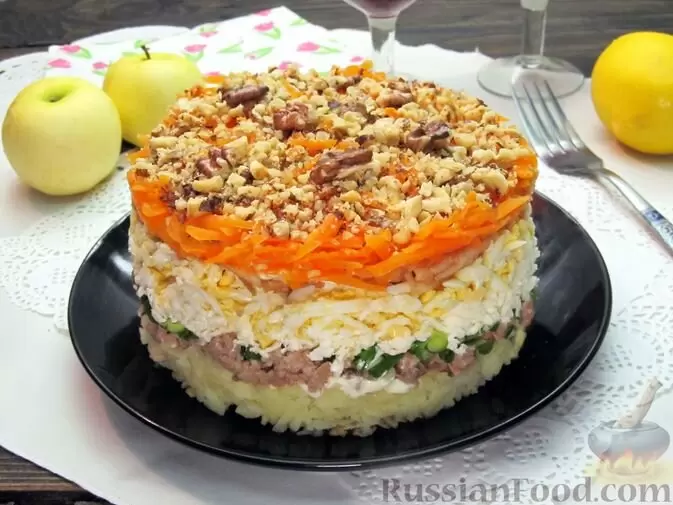 Салат с курицей и орехами