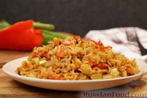 - Рис с овощами: простое, но в то же время ароматное блюдо, которое можно дополнить кабачками и болгарским перцем для яркости вкуса.